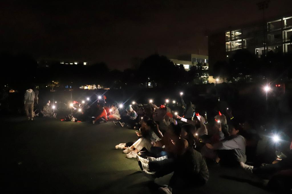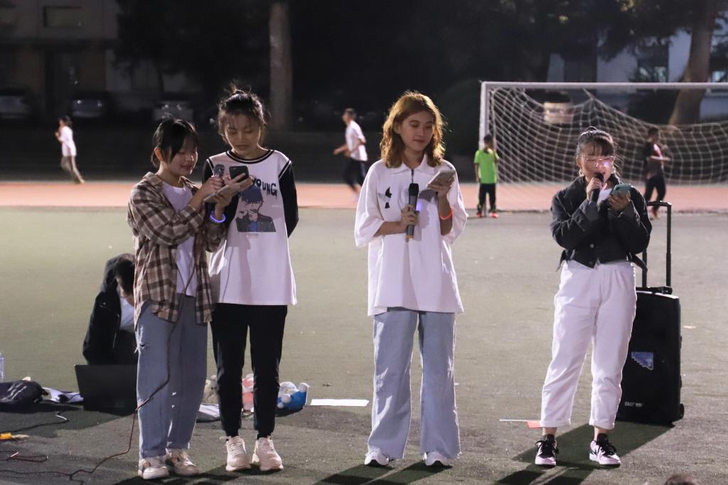 10月6日晚,国庆荧光跑活动在东运动场开跑,而在荧光跑的终点——学校西运动场,“国庆草坪歌会”早已“等待”即将到来的资环师生们。