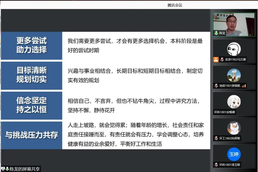 我院优秀校友李晓阳在联合国环境规划署实习和如何顺利入职农业农村部的经历引来了不少同学的关注。李晓阳从申请介绍、如何寻找机会、如何把握机会、个人成长四个方面分享他的成长成长故事。我院优秀校友、华东师范大学教授陈龙以“职业规划浅谈”为主题与学弟学妹们展开交流,他回忆了自己在担任院学生会学术科技部部长时的故事,这期间不仅收获了工作经验,同时也能在学长学姐的帮助下勇敢尝试。最后,他谈道:“华农是一个有着丰富文化活动的学校,在保证完成基础课和专业课的学习之余,我们应该在不断尝试的过程中,努力成为一名综合发展的高素质人才。”