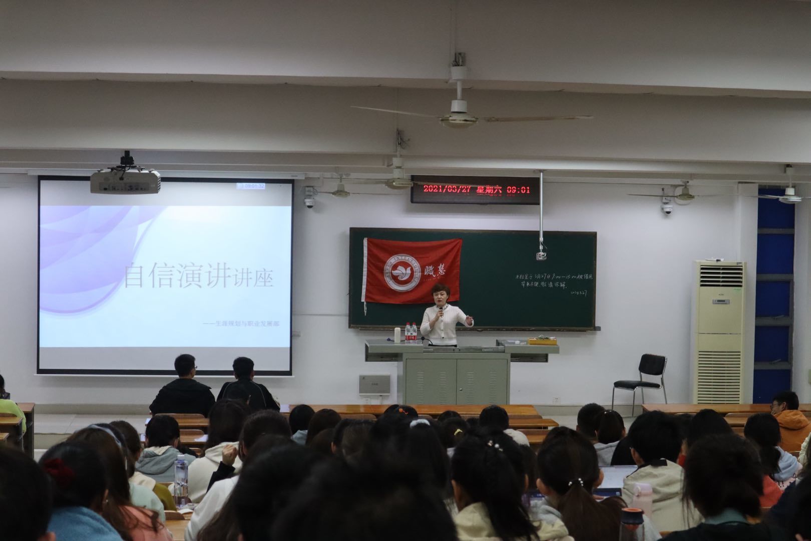 对正确的听众,用正确的方式,传递正确的信息,是每个人都需要培养的核心技能之一。为帮助同学们增强在演讲中的自信,由我院生涯规划与职业发展部主办的就业指导系列讲座之“自信演讲”指导讲座于3月27日上午在第三教学楼C205教室成功举办。本次讲座邀请到了北京大学心理学学士、职慧志愿讲师刘司玥担任主讲人。