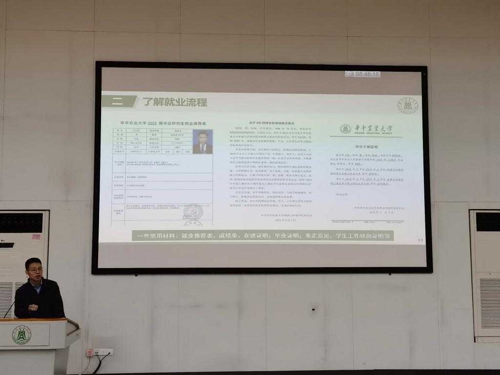 为帮助毕业生认清就业形势、了解就业流程,更好更快实现高质量就业,10月28日上午,学院在三教S2报告厅组织召开2022届毕业研究生就业动员大会。学院党委副书记熊海林参加大会并做就业形势分析与就业动员,研究生辅导员胡志宏主持大会。